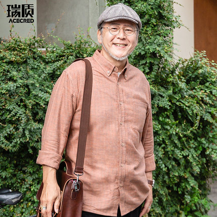 爸爸纯棉长袖衬衫中老年人男装春装衬衣中年老爸爷爷寸衫老人衣服